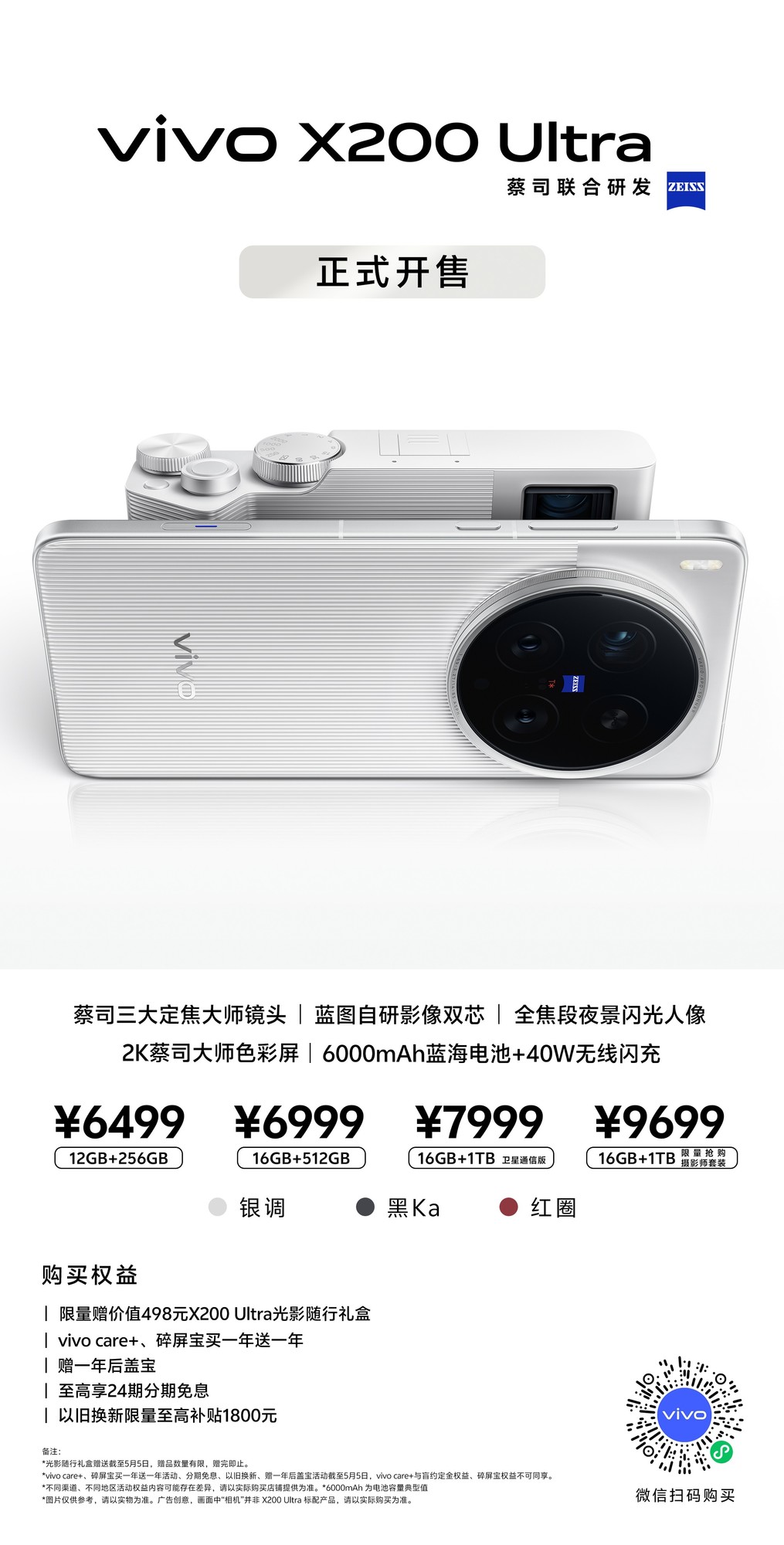 据了解,vivo X200 Ultra共有12GB+256GB版本、16GB+512GB版本、16GB+1TB卫星通信版本和16GB+1TB 摄影师套装版本,售价分别为6499元、6999元和7999元和9699元。