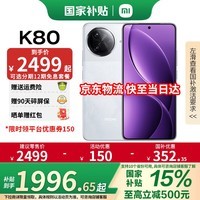 红米K80 5G手机(12GB+256GB 雪岩白)正在京东进行优惠活动。原价2499元,现在下单可领取满1500减150元优惠券,还有首购礼金50元,再加上国补15%,最终实付低至1954.15元。