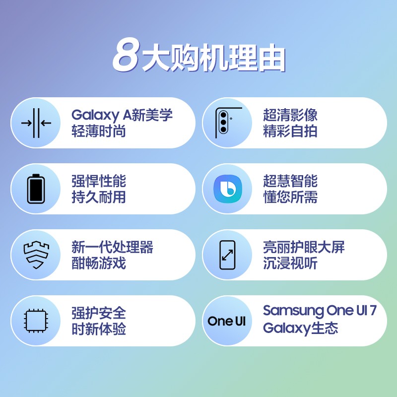 三星 SAMSUNG Galaxy A56 5G手机全新上市,性能全面升级,带来更流畅的使用体验。搭载强大的5G网络支持,轻松应对日常娱乐与办公需求,高清大屏搭配持久续航,满足你对智能手机的多种期待。