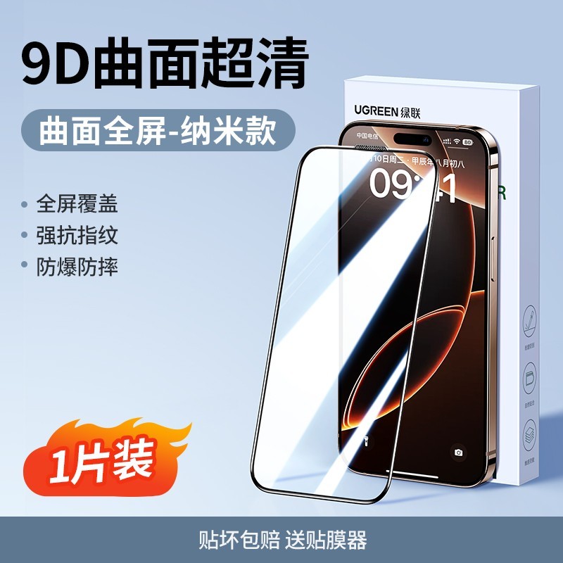 绿联 iPhone 超清抗指纹钢化膜 适配 iPhone 16 pro 强力推荐热销中,现在参加活动立减2.1元,原价12.80元,最终到手仅需11.7元!本款钢化膜采用超清晶钻材质,具备9D曲面防尘设计和超强抗指纹功能,高清透光不反光,贴合屏幕无气泡,高铝材质防爆抗摔,全面保护您的手机屏幕,买1片即送贴心贴膜器并享贴坏包赔服务,性价比极高,喜欢的朋友千万不要错过。