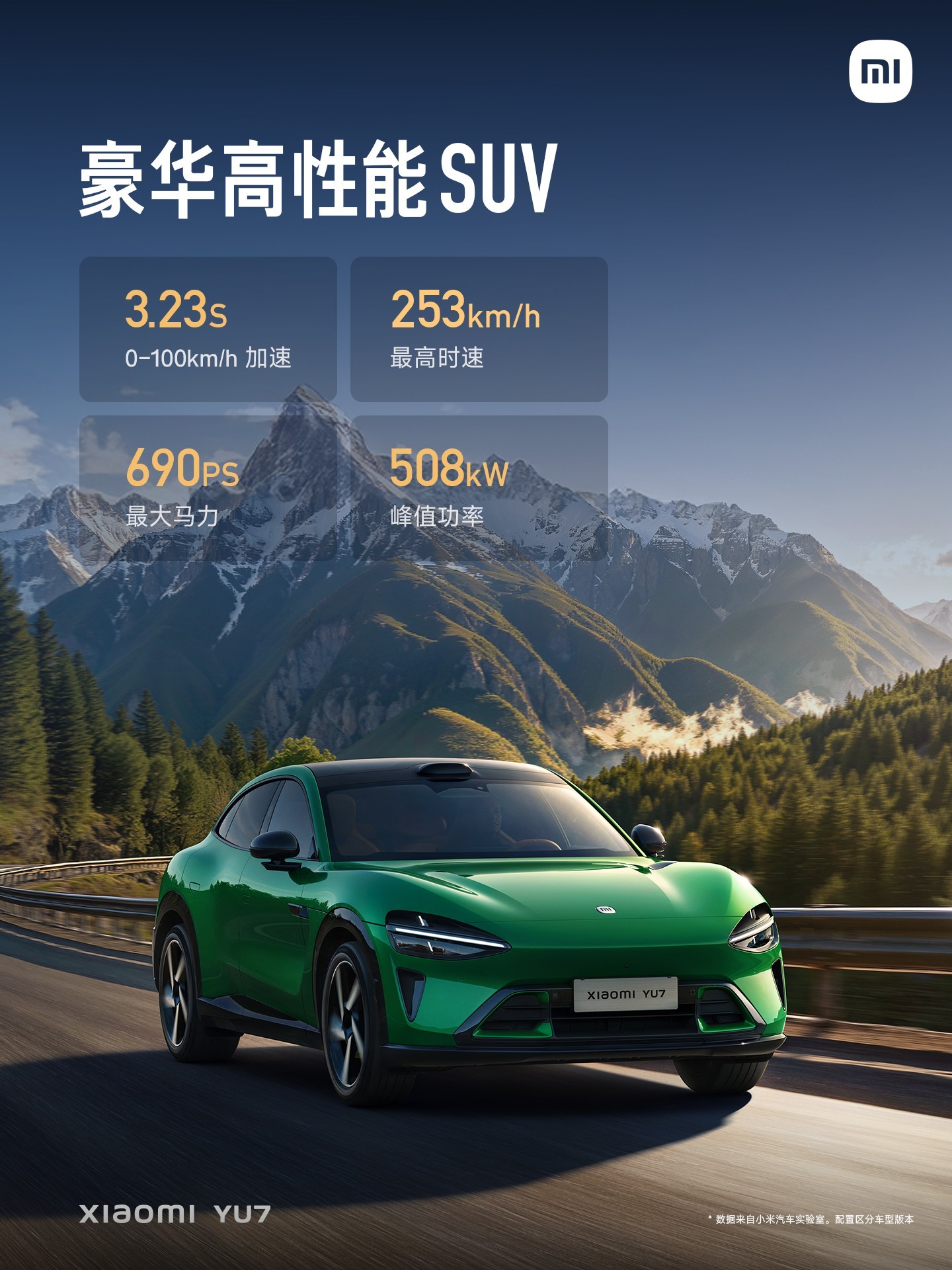 本文属于原创文章,如若转载,请注明来源:搭载小米超级电机V6s Plus 小米YU7性能参数公布https://mobile.zol.com.cn/986/9863801.html
