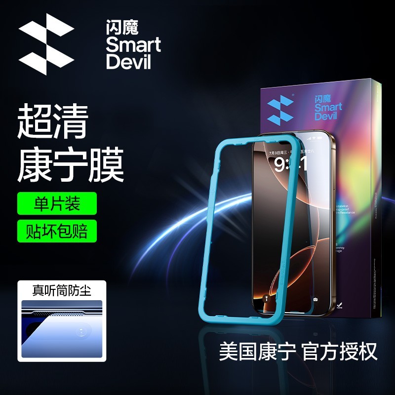 闪魔 MARTDEVIL 专为苹果 iPhone 16 Pro Max 设计的钢化膜,采用康宁防爆技术,超强硬度有效抵御刮擦,超清防尘设计搭配一代贴膜神器,轻松实现精准贴合不留气泡,全面保护屏幕的同时保持触感顺滑。