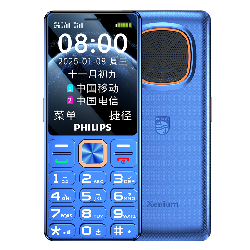 飞利浦P608新款AI全网通老人机,专为中老年人和学生设计,大屏大字大声音,操作简便易上手,支持4G全网通,信号稳定通话清晰,超长待机时间持久,日常使用更省心。机身采用经典按键设计,手感舒适防误触,搭配宝石蓝配色时尚大方。