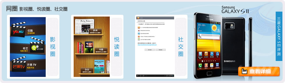 有“史上最完美智能手机”之称的GALAXY S Ⅱ凭借惊艳的屏幕技术、时尚纤薄的设计、顶尖的软硬件配置和一流的产品体验为智能手机创建了新标准。这款双核智能手机厚度仅为8.49毫米,同时还采用了Android2.3操作系统和性能出众的Super AMOLED Plus魔丽屏,为消费者带来无以伦比的使用体验。此外,它内置了三星独有的娱乐和内容服务——三星“网圈”,为用户提供更为方便、快捷的整合式音乐、游戏、电子书以及社交服务。 |